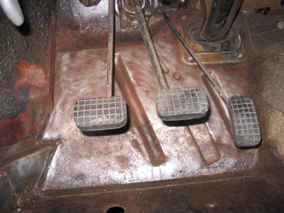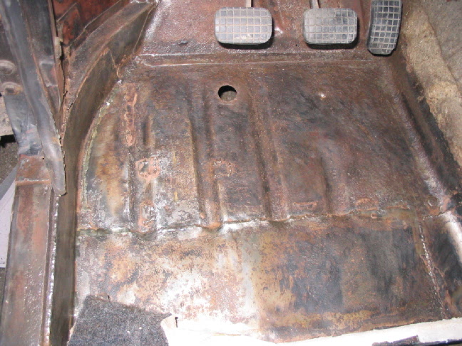 la partie derriere les pedales est propre a par un chti trou en bas de la pedale de frein,le plancher et cette partie est bien soudée,pas de rouille de ce coté-la:
