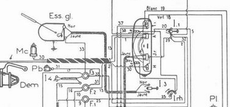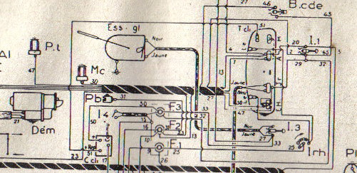 Alors, avec le schéma, le 33 en provenance du fusible 3 arrive sur la même cosse que le jaune, qui lui part à l’interrupteur et revient au moteur d’essuie glaces par le noir….