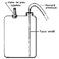 Avec le dispositif indiqué, le problème est simplifié : il suffit d'envoyer une légère pression d'air (pompe à pied par exemple) par la valve (sans obus) montée sur le bidon pour que l'huile coule par le tuyau de plastique monté sur le tube en cuivre soudé sur le bouchon du bidon.