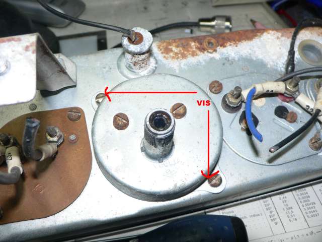 pour le démontage de l'instrument lui même, oter les vis repérées, et faire pivoter l'instrument dans son logement pour le sortir...
