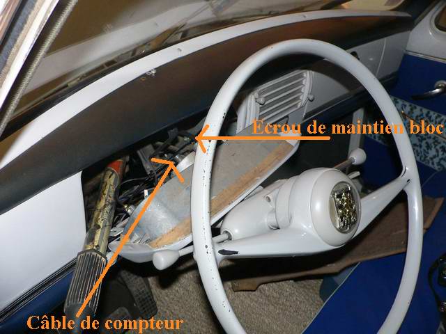 sortir le bloc délicatement: attention, manoeuvrer pour ne pas bloquer l'aiguille du compteur de vitesse qui est solidaire du bloc...