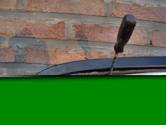 1 bis : décoller la coulisse de vitre pour avoir accès à la vis et pouvoir reculer le montant du déflecteur.