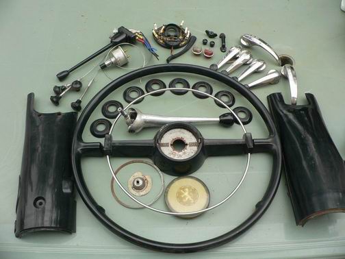 à noter que le commodo de cligno est cassé, mais complet, et que le couvre colonne du bas est cassé également ...les câbles ont je pense été coupés (démarreur,capot...)
