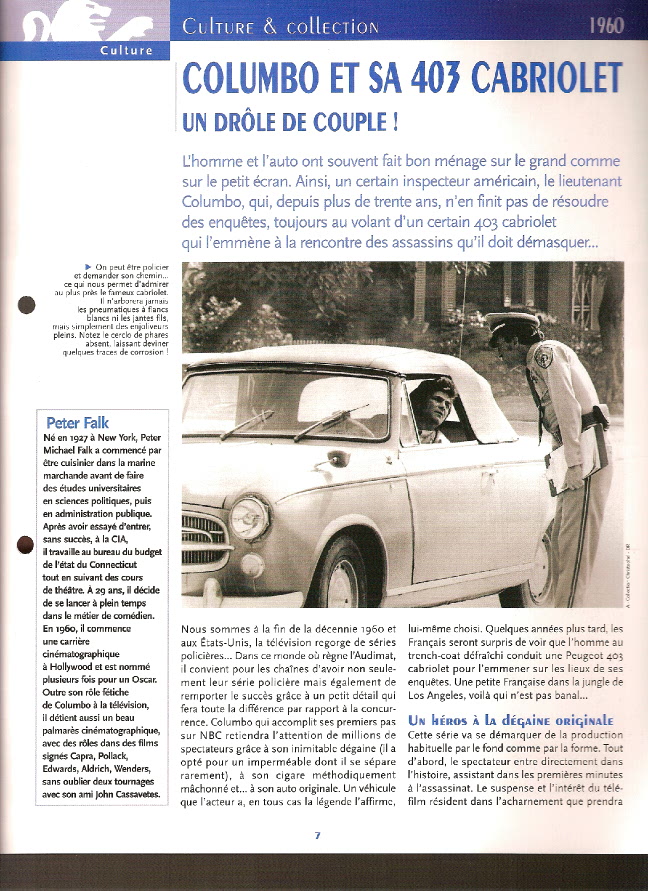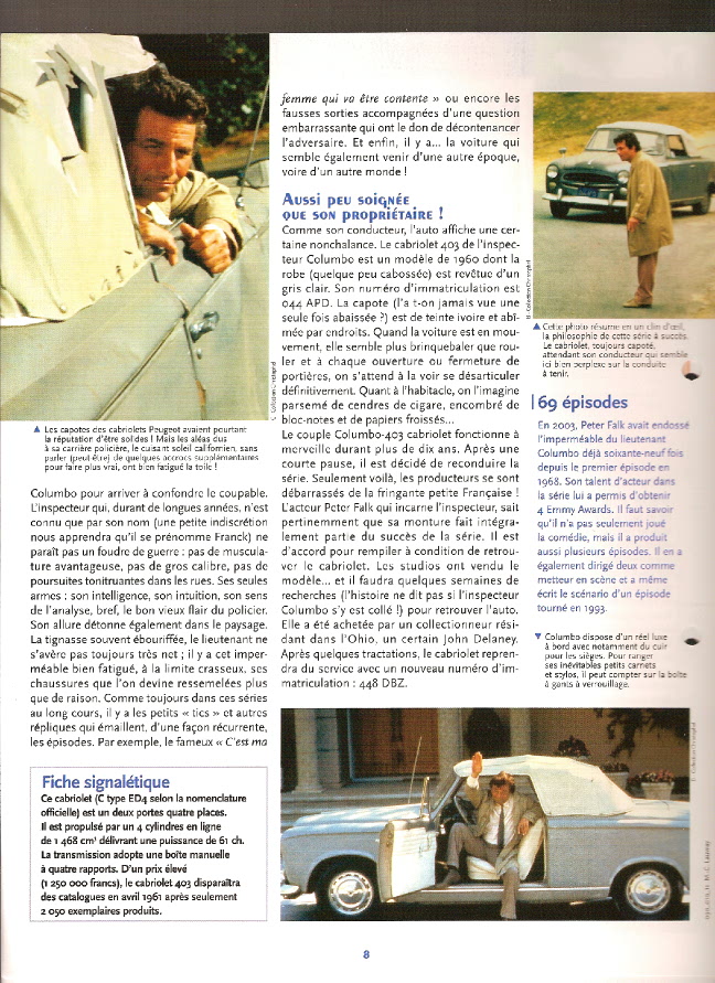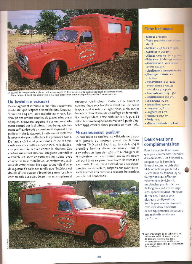 dans le dernier numero ,c'est la 204 berline 1965 et il y'a 2 articles sur la 403,1 sur la colombo et 1 sur les utilitaires pompier et ambulance montés par la firme surirey;