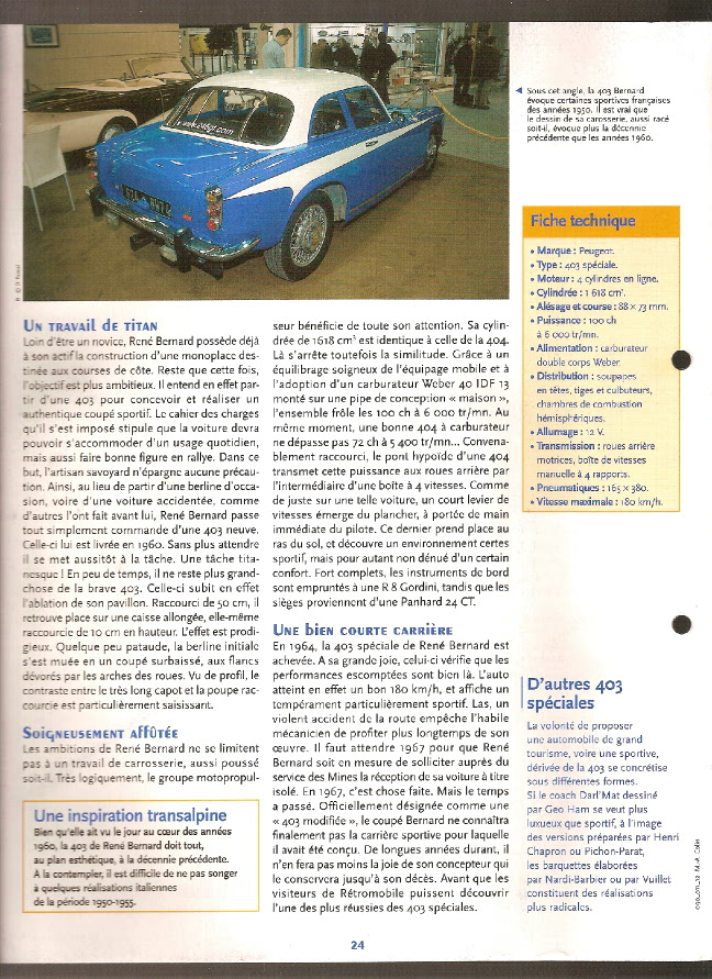 nous parlions de 403 et il me dit :"tiens,c'est marrant,quand j'etais jeune,l'allais faire du rock dans le garage d'un copain et dans ce local,il y avait une 403 coupé bleue et blanche ,coupé que son pere avait fabriqué!"
