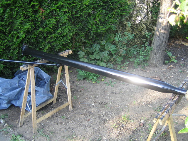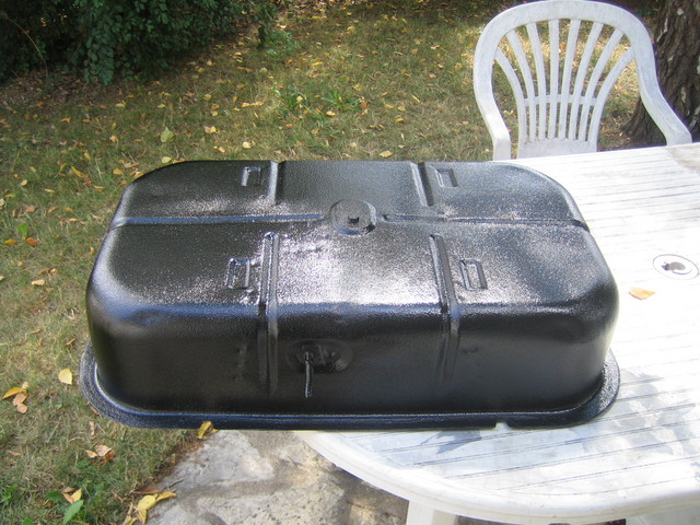 une fois decapé un traitement au derouillant phosphatant, un appret antirouille et une peinture epoxy noire.