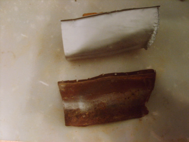 ensuite je retourne la pièce fait sauter les points de soudure et je marque l'angle avec un gros fer plat et le marteau car le plancher n'est pas encore plat mais forme une sorte de v avec un grd angle autour de la rainure