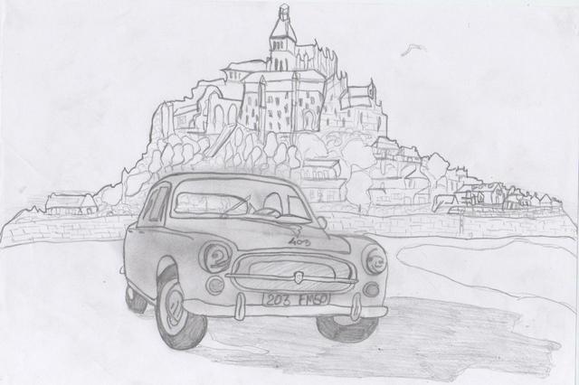 vola ma 403 en dessin devant le mont saint michel ---------------------- amicalement