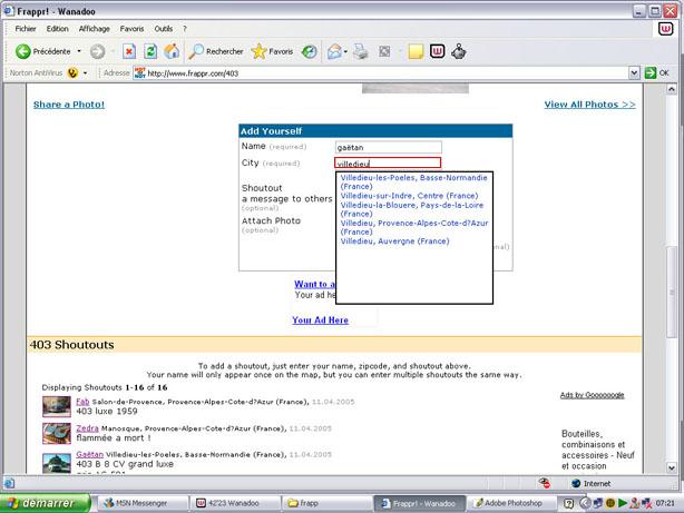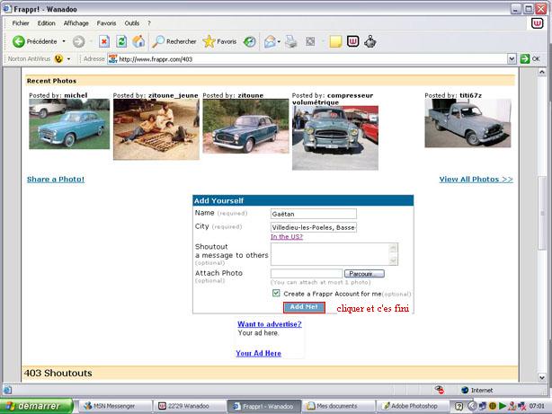 1) connecté vous à ce lien http://www.frappr.com/403