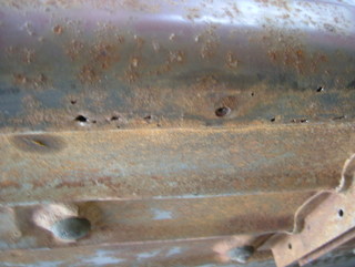 maintenant compte tenu de ce que je vois il n'est pas possible de reboucher juste les trous car le semi auto ne supporte pas la merde tu ne peux souder que des tôles saines, et la tienne est hs partout car ce que tu vois c la partie cachée de ice berg la rouille vient de l'intérieur des corps creux