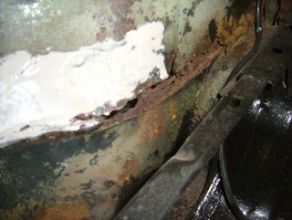 la seule façon de reboucher des trous sur de la tôle pourrie c'est le chalumeau et baguette d'apport acier là tu fais ce que tu veux, dès fois même tu mets le feu à la caisse ... gaffe!