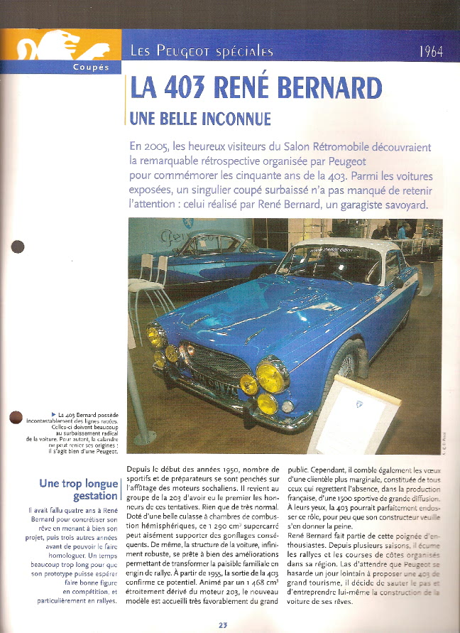 nous parlions de 403 et il me dit :"tiens,c'est marrant,quand j'etais jeune,l'allais faire du rock dans le garage d'un copain et dans ce local,il y avait une 403 coupé bleue et blanche ,coupé que son pere avait fabriqué!"