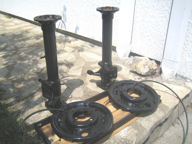 une fois decapé un traitement au derouillant phosphatant, un appret antirouille et une peinture epoxy noire.